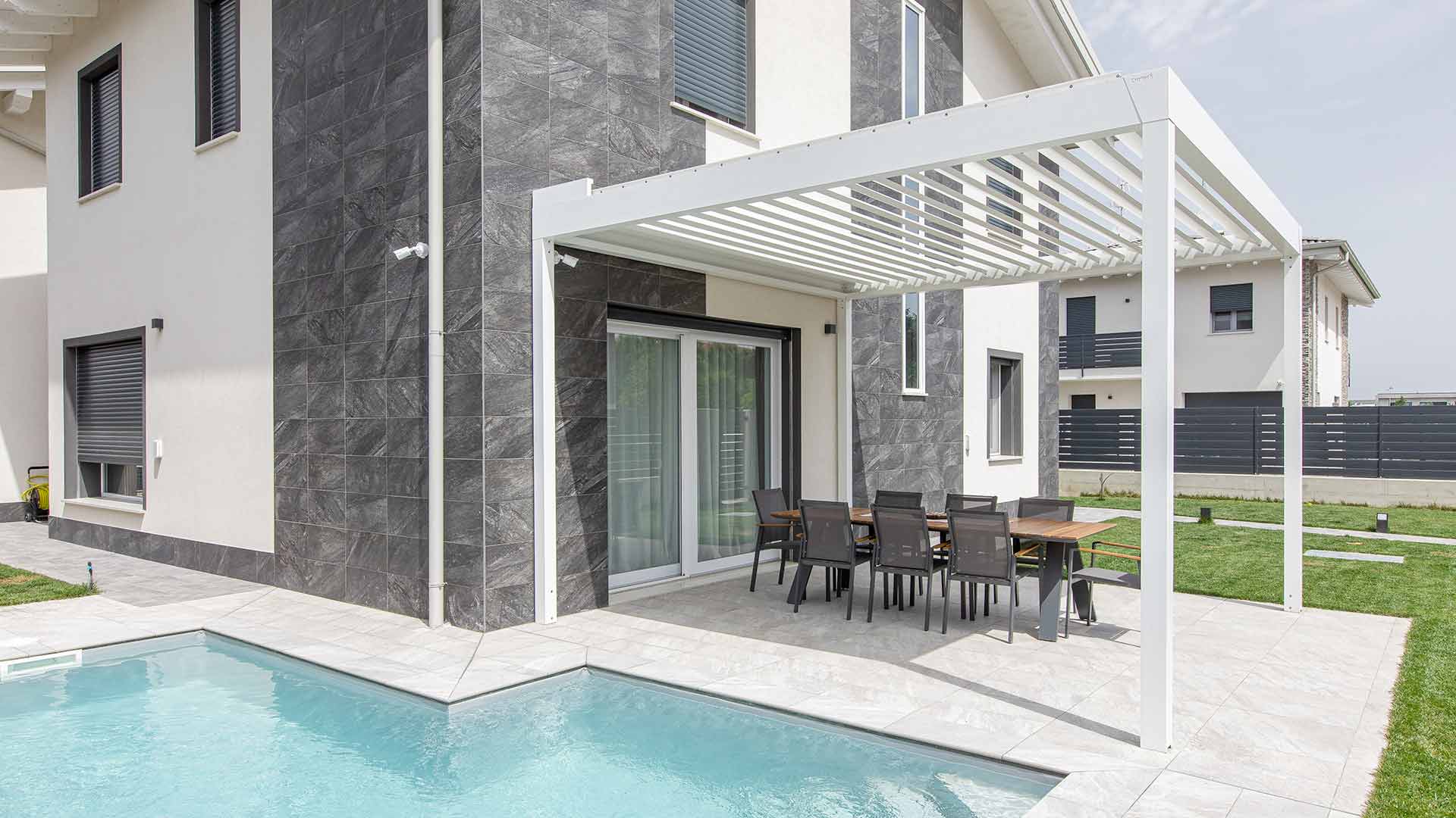 La struttura portante in legno per le pergotende è un intramontabile classico tornato di moda nell’architettura moderna.